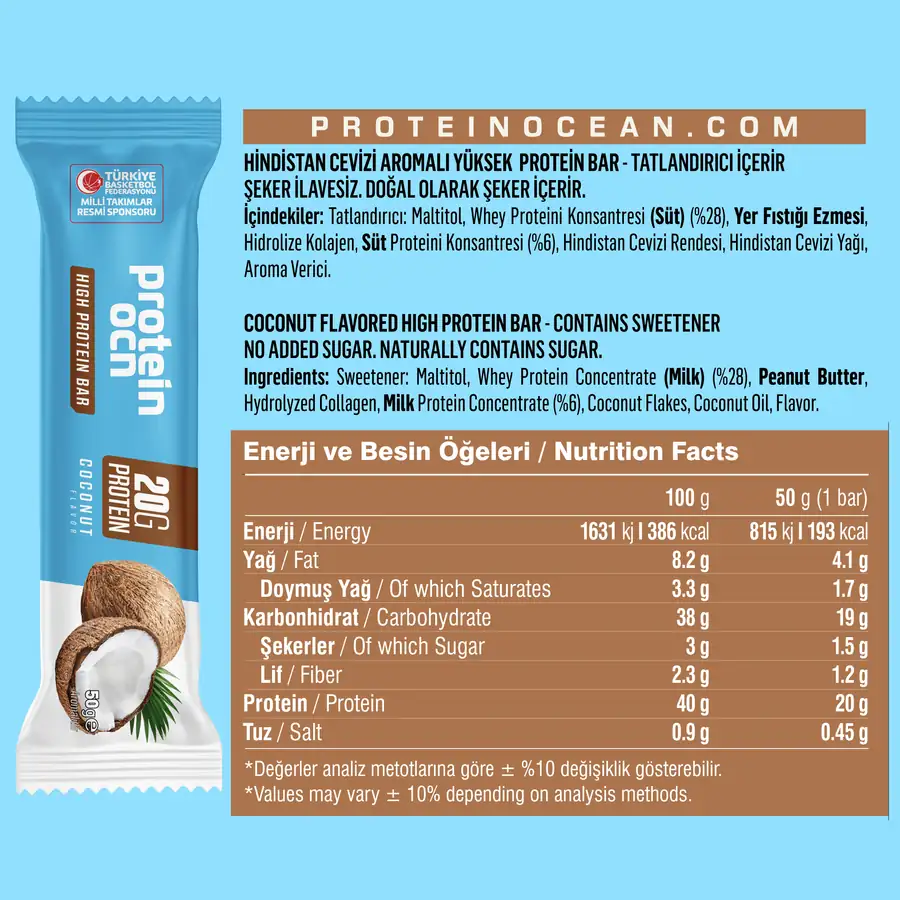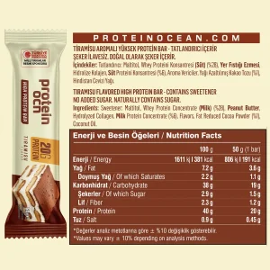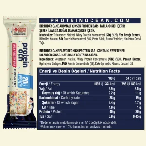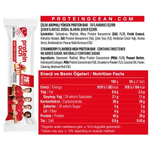 پروتئین بار خارجی اوشن یک پروتئین بار خوشمزه که از پروتئین وی با پروتئین بالا و قند کم تهیه شده است. حاوی ۴۰٪ پروتئین و بدون شکر افزوده و خرما است.